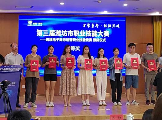 8月26日,“才聚鸢都·技能兴潍”第三届潍坊市职业技能大赛——跨境电子商务运营职业技能竞赛暨山东省第三届跨境电子商务运营职业技能竞赛潍坊选拔赛在潍坊市综合保税区举办,来自全市20余家企业及相关高职院校的职工、教师、学生共58名选手参加市级决赛,我院跨境电商专业张文老师获得三等奖。