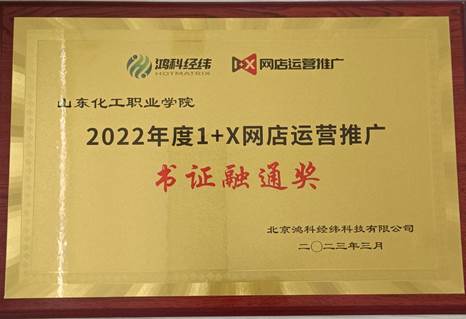 近日,北京鸿科经纬科技有限公司对在2022年“1+X网店运营推广”试点的推广及考核组织工作中表现优异的先进院校进行表彰,我校获2022年度1+X网店运营推广书证融通奖。