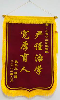 一面锦旗,一份认可,一种责任。近日,管理工程学院收到来自山东省德州市学生家长魏先生的一份特殊礼物——一面印有“严谨治学宽厚育人”的锦旗,魏先生用这种特别的方式表达了对学院辅导员老师对孩子尽心尽责的感激之情。