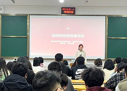 读书分享开始,首先由学生代表分享“世界读书日”的由来、意义等,让同学们深入领会到了读书的重要性。
