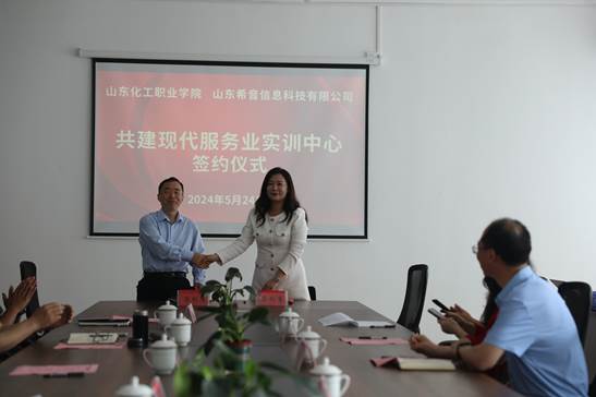 为进一步增强校企深度合作,推进高质量产教融合,构建阶梯递进式实践教学体系,5月24日上午,“希音现代服务业实训中心”签约仪式在学校主校区会议室举行。滨海区教育分局党组成员刘志海,山东化工职业学院党委委员、常务副校长冯喜成,教务科研处、校企合作处处、管理工程学院等主要负责同志,山东希音信息科技有限公司总经理王玮,副总经理郑博允、解洪凯等企业领导出席了仪式。仪式由管理工程学院院长朱彬彬主持。