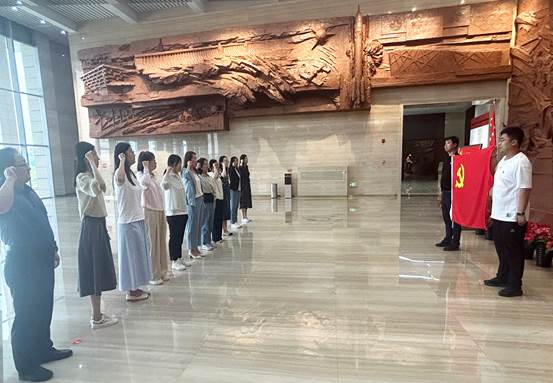 潍坊市党史教育馆以“使命·担当”为主题,设四个主展厅。展馆序厅,灯光柔和而庄重,氛围肃穆而神圣。党员们在此重温了入党誓词。“请所有党员面向党旗,举起右拳跟我宣誓...”,宣誓仪式由朱彬彬书记领誓,整齐庄重的动作,洪亮清晰的誓词,表达着党对人民、对共产主义事业的无限忠诚,也唤醒了每一位党员内心深处的信仰与使命。