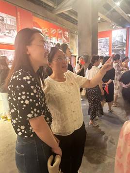 随后在讲解员的引领下,党员教师们依次参观了四个主展厅。第一展厅,一座名为“五四烽火在潍坊”的主题雕塑屹立其中,党员们仿佛穿越时空看到了五四运动在潍坊传播的场景。“一门忠烈”通过实景复原、壁画的形式展现了冯旭臣一家用鲜血和生命保护家乡的悲壮故事。还有中国共产党创始人之一、山东党组织最早的组织者和领导者王尽美的英雄故事。目光所致皆是华夏,五星闪耀皆为信仰,党员们凝视着这一张张历史图片、一页页文献资料、一件件现场实物,充分感受到了共产党人不畏艰险、顽强拼搏的伟大爱国精神。在这一刻,党员们深刻体会到了共产党人“不忘初心、牢记使命”的深刻内涵。
