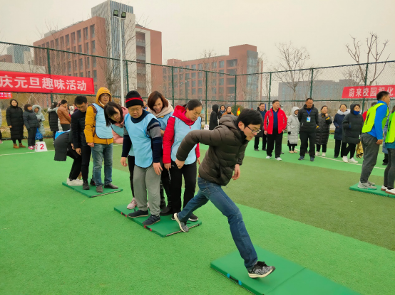 为响应国家全民健身号召,丰富教职工文化生活,增强团队合作精神和凝聚力,推动学院“家文化”建设,我院7部门于2019年12月25日(周三)下午14:00,在学院足球场进行了2020年庆元旦趣味活动。机电工程系教师全员参与了活动。
