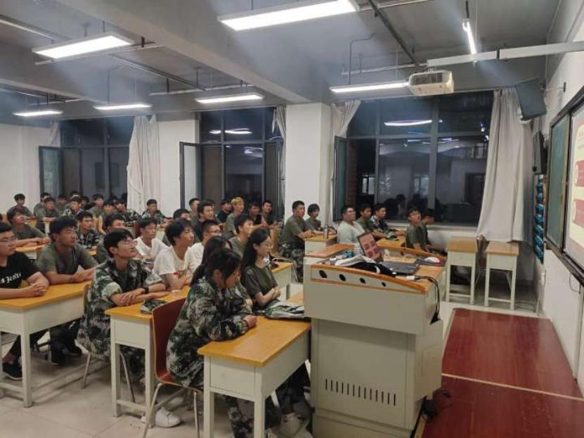 机电工程学院团总支书记赵杨通过详细讲述社会主义价值观、《新时代爱国主义教育实施纲要》解读、新时代的中国国防、没有共产党就没有中国特色社会主义、党的百年光辉历程等五个方面对新生进行爱党、爱国教育,厚植爱国主义情怀,坚定一心一意跟党走的信念。