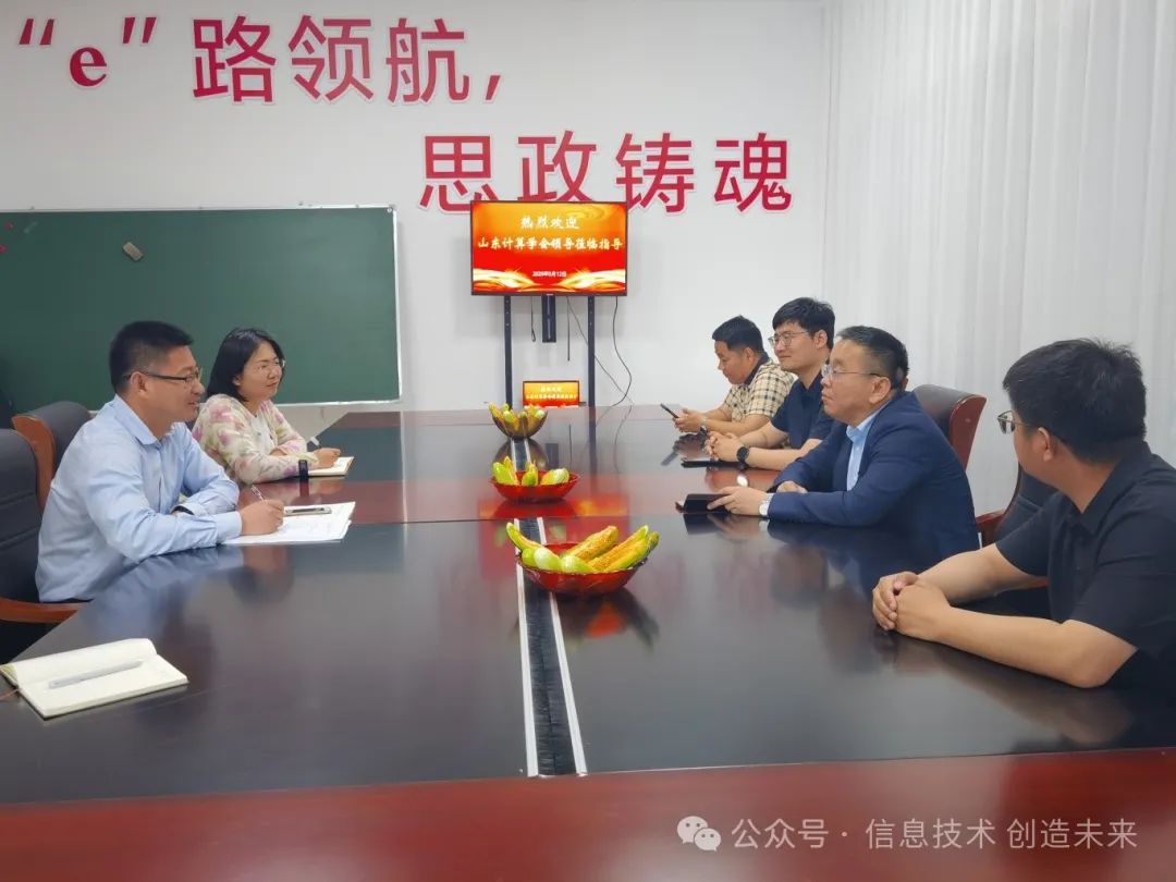 在调研会上,郝连涛对国海涛秘书长一行的到来表示热烈欢迎,详细介绍了学院办学现状、发展愿景及合作意向。郝连涛表示,学院正积极推动以竞赛促进教学与学生学习的模式,并致力于专业精品课程及省级规划教材的开发。同时,学院期待与山东计算机学会在各方面展开紧密合作,共同推进职业教育的发展。牛一菽和韩静宜分别汇报了学院近年来的赛事参与和学术成果。