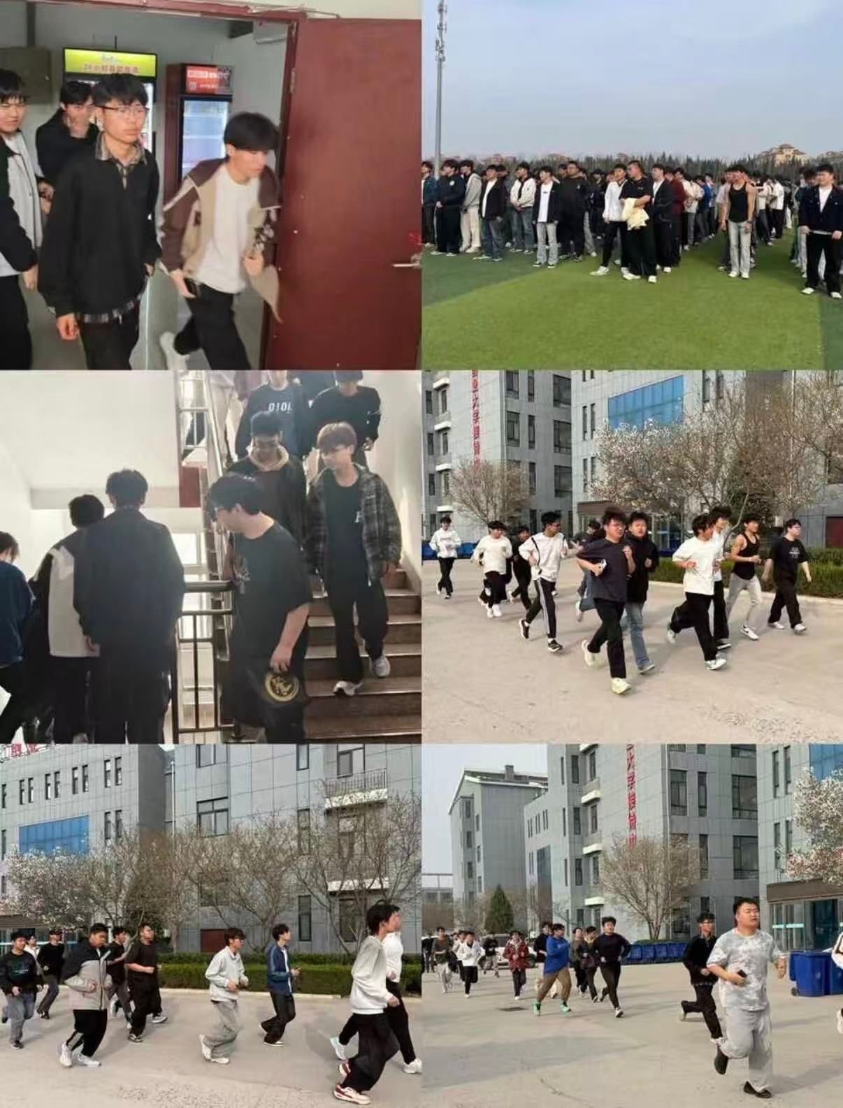 本次演练以“宿舍突发火情”为模拟场景,启动预警后,应急广播循环播报疏散指令,各楼层学生干部迅速到位,我院学生以“弯腰捂鼻、低姿前行”的规范动作,沿预定路线快速有序撤离。到达操场集合点后,各班级立即清点人数并上报,整个过程衔接紧密、处置规范,有效检验学生火场逃生与自救互救的实操能力。