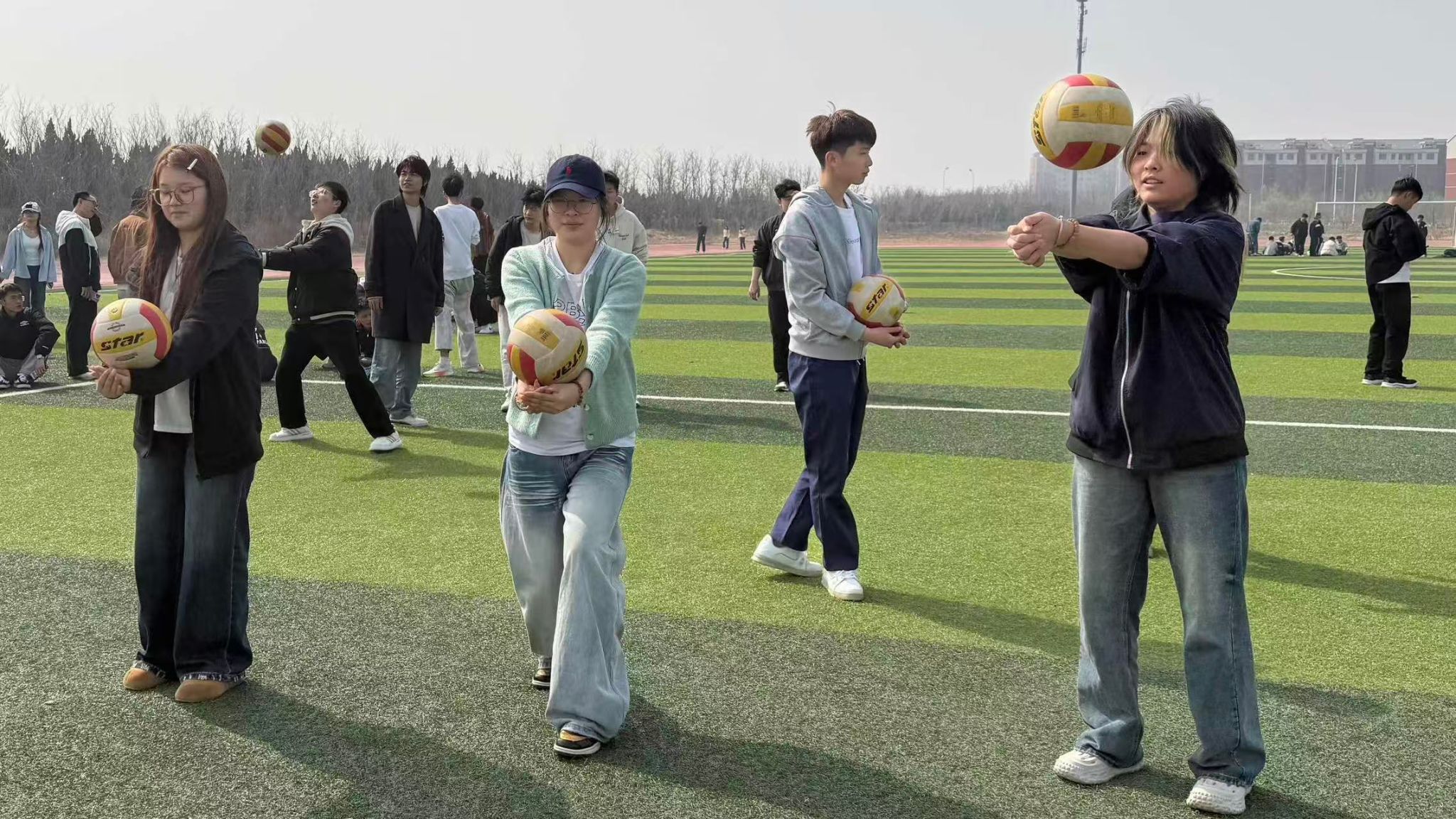 阳光正好,微风不燥,特色大课间的欢乐画卷正徐徐展开。绿茵场上足球飞转,长绳翻飞间身影轻盈跃动,彩色呼啦圈划出灵动弧线,拍球声与欢笑声此起彼伏,仰卧起坐的坚持里藏着少年韧劲。从单人竞技到团队协作,从舒展筋骨到释放活力,每一项运动都让课间时光充满欢声笑语,让青春在奔跑与跳跃中尽情绽放。