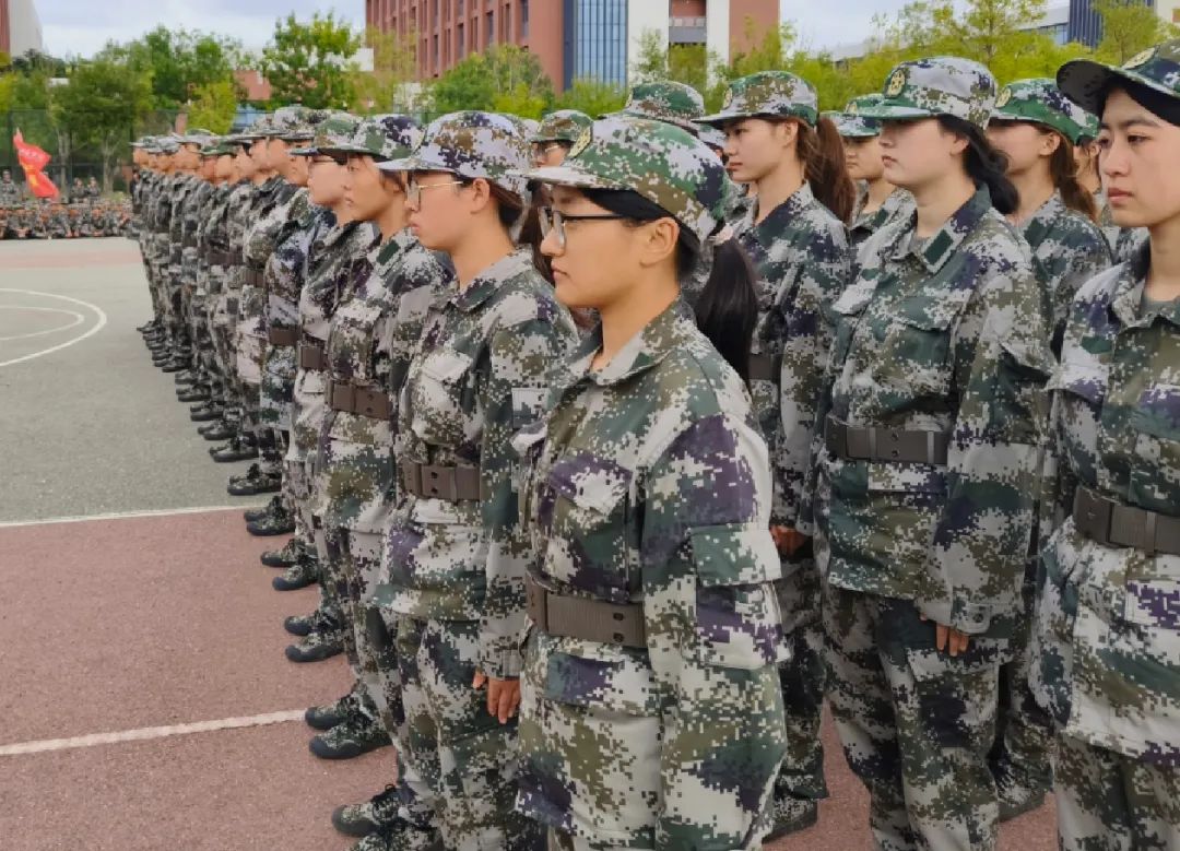 稍息,立正,行进,立定,敬礼,礼毕……烈日长空着戎装,苍穹之下斗志昂。学生身着军服,一令一动,服从指挥。以高昂的士气、抖擞的精神、标准的动作展示着第一阶段的训练成果,整齐的踏步声,熔铸青春最完美的交响。