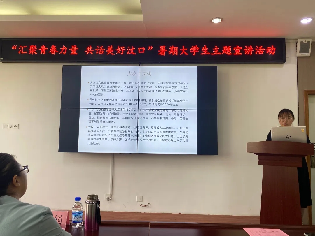 我院“三下乡”团队三名学生代表围绕大汶口文化的传承与创新、陶文化及文物保护等方面展示大汶口文化的有缘历史和深厚底蕴,坚定文化自信,积极宣传和保护大汶口文化,担当青年责任。