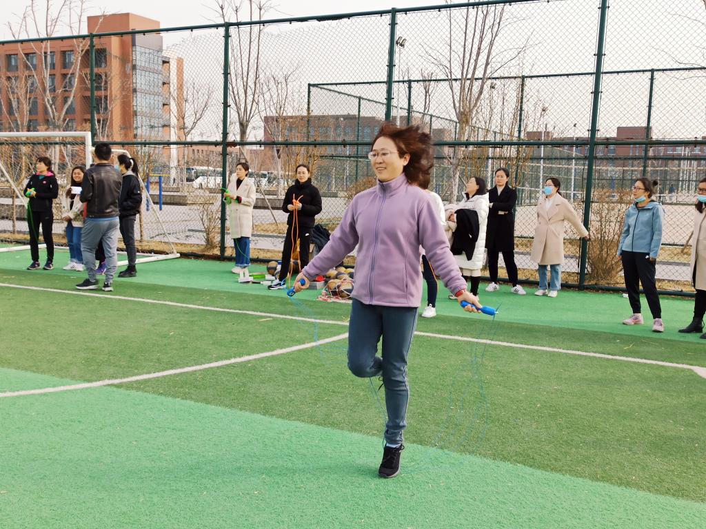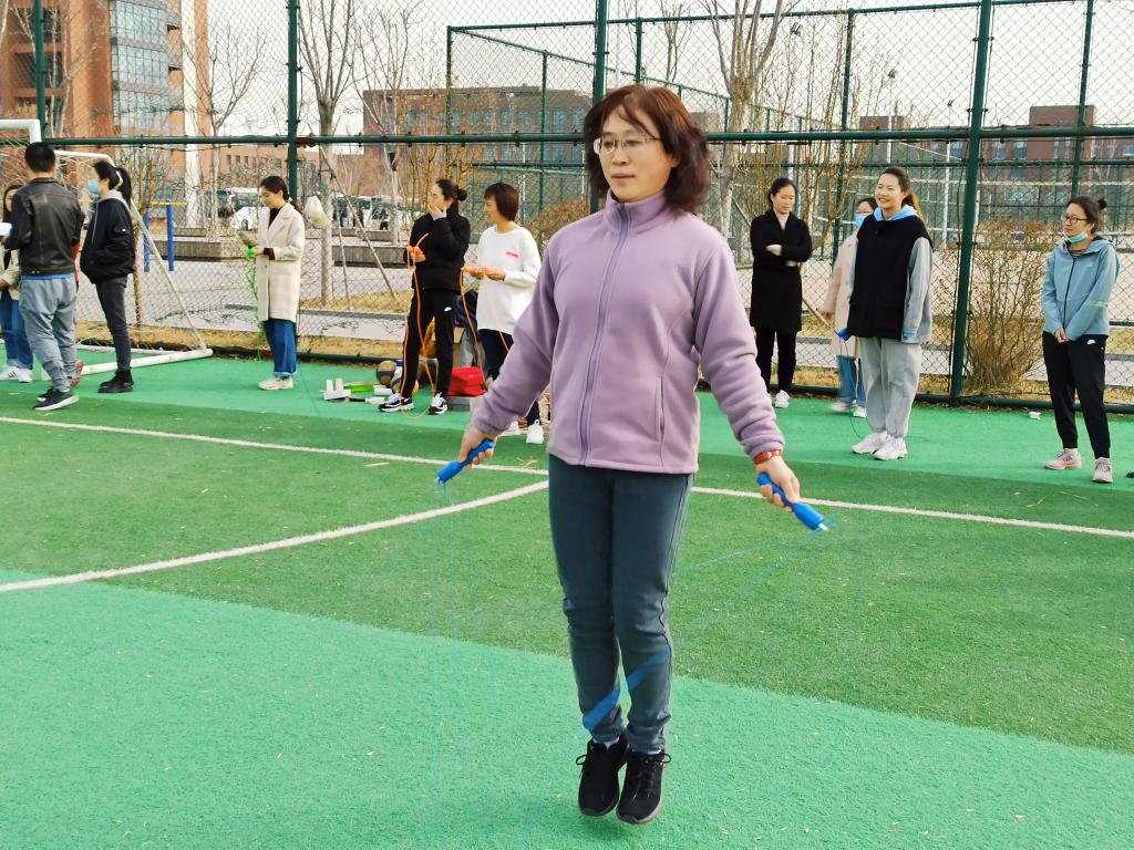 本次比赛项目内容各异,风格迥然,突出了“趣味”与“合作”的主题。此次活动精心设计了踢毽子、乒乓球拍运球以及跳绳三个项目,女教职工们积极参与比赛,男教职工负责裁判,不但是智慧和体力的角逐,还是团结和协作的完美比拼。