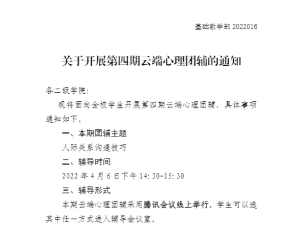 下一条:云端心理团辅—心灵成长