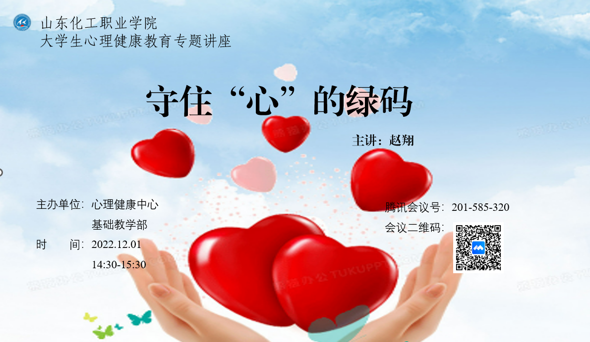 为积极学习宣传贯彻党的二十大精神,全面贯彻习近平新时代中国特色社会主义思想,全面贯彻党的教育方针,坚定不移落实立德树人根本任务,结合我校心理育人工作安排,在疫情防控形式下为提升全校师生心理健康水平,维护师生安全健康,我们组织了山东化工职业学院心理健康专题讲座——守住“心”的绿码。
