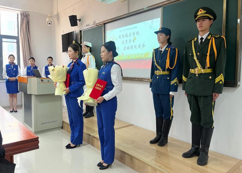 鲜花飘香,掌声如潮,礼仪队员和国旗护卫队员分列教室两侧。11月20日,我校国凯航空学院在7202教室举行了一场隆重而简洁的欢送会,为首批即将进入厦门机场进行工学交替的优秀学子送上最真挚的祝福与期待。学院领导,全体老师和学生代表们共同见证了这一高光时刻。