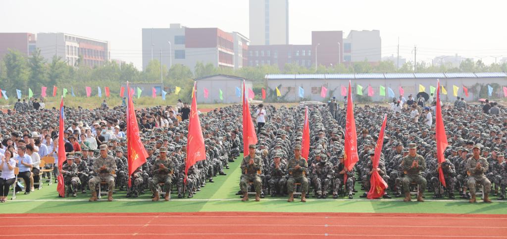 学校副校长赵建新、校长助理李凤娟、校务委员朱彬彬,全体中层干部及教职工,2024级全体新生参加开学典礼暨军训动员大会。