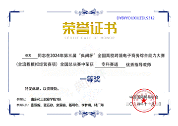 本专业师资力量雄厚,教师梯队组成结构合理,教师发表论文6篇、授权实用新型专利1项。教师在各项大赛中多次获奖,其中,教师参加山东省教学能力比赛获省级二等奖一项、三等奖一项,山东省“技能兴鲁”跨境电子商务运营赛项,二等奖一项项、三等奖多项,潍坊市“技能兴潍”职业技能大赛跨境电子商务运营技能竞赛二等奖一项,三等奖多项。