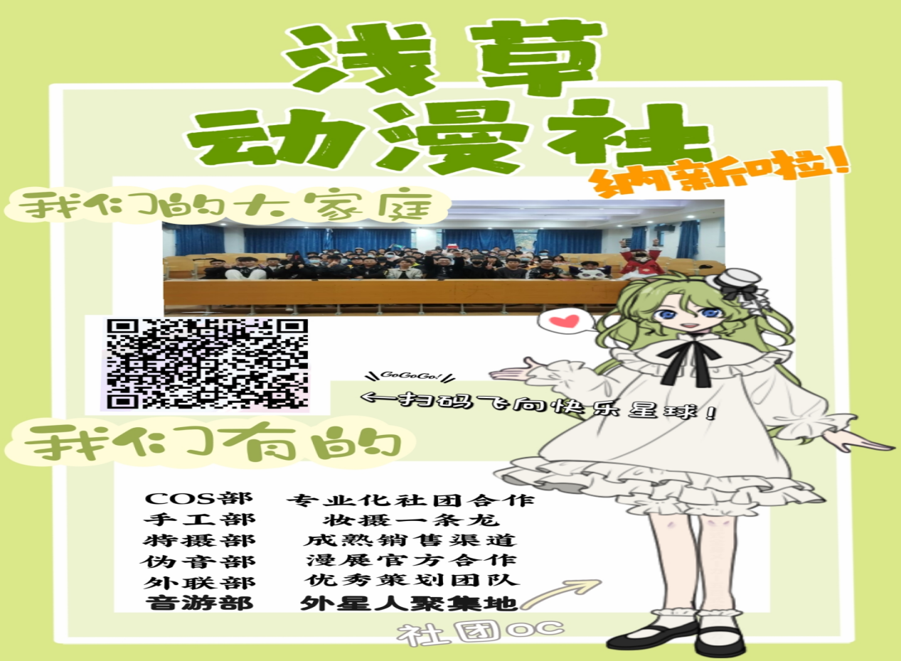 我们成立了音游部、cos 部、手绘部、特摄部、伪音部等兴趣小组,与青岛第一大漫展 DC有着相当密切的商业合作。只要来就可以找到兴趣相同的伙伴,打开异世界的大门,来到另一个缤纷世界。
