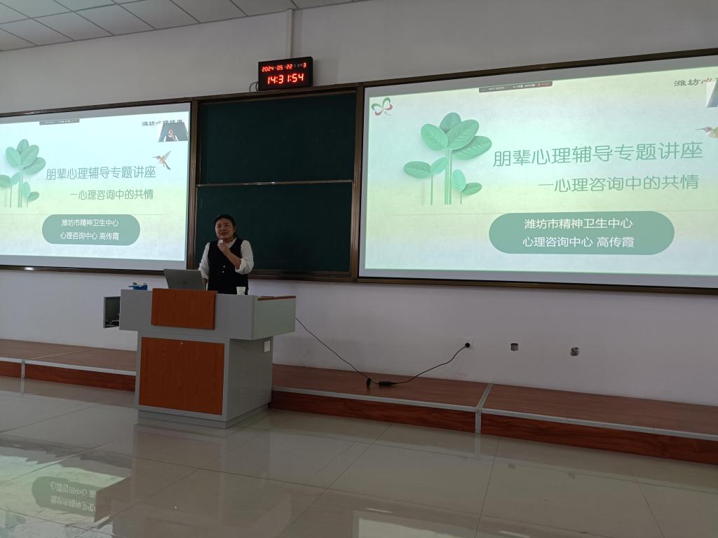 为健全“学校—二级学院--班级--宿舍”四级学生心理健康工作网络,更好的发挥心理健康预警网络的作用,5月22日,我校特别邀请潍坊市精神卫生中心专家高传霞到校共同开展2024年春季学期心理委员专项培训。