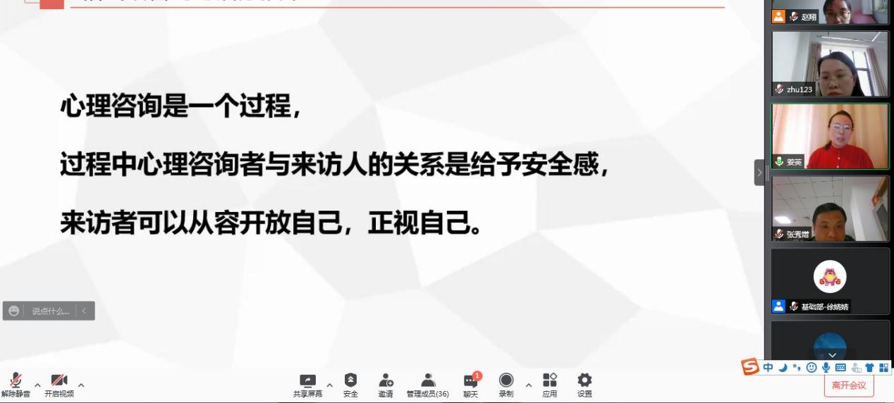 为积极推进学生心理健康教育工作,帮助全校辅导员班主任提升疫情期间学生心理疏导能力,我校心理疏导工作小组近日采用线上会议的形式举办了心理疏导技巧交流会。
