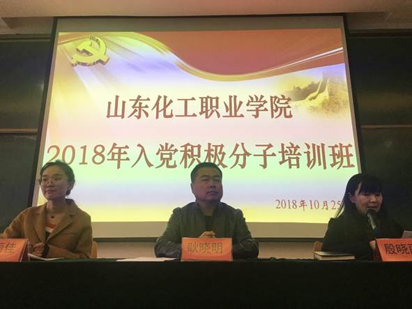 2018年10月25日上午,入党积极分子培训班开班仪式在第七阶梯教室举办。山东化工职业学院纪委书记、党委委员耿晓明同志,组织部副部长殷晓丽同志,团委副书记翟雨佳同志参加开班式,相关部门负责同志及全校300余名师生入党积极分子参加了此次培训。殷晓丽同志主持开班式。