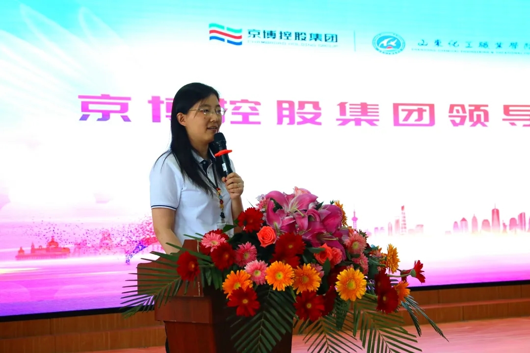 京博控股集团N1N商校常务副校长岳晓彤在开学典礼致辞。她说,京博控股集团高度重视产教融合工作,建厂伊始,就将“校企一家”作为校企合作秉承的理念。经过近30年的发展,京博已成为年销售收入608亿元、利税55亿元的中国500强企业,仍不忘初心:我们源起于校办工厂,本身就是继续再教育基地,必须与社会的大学进行各种形式的联融、抱团发展。在京博控股集团,将是首批校企共育实验班同学重新认识企业、重新感受专业知识魅力的开始,企业将全力为同学们创造良好的学习、生活、成长环境。让同学们在校企双导师的带领下,通过职业化的学习和塑造,树立健康的职业观与职业道德意识、养成良好的职业素养;通过深度融入企业生产实践,掌握过硬的职业技能本领,提升核心竞争力。并坚信,京博控股集团这一广袤的产业平台一定会成为同学们赢在职场起跑线的最佳助力。