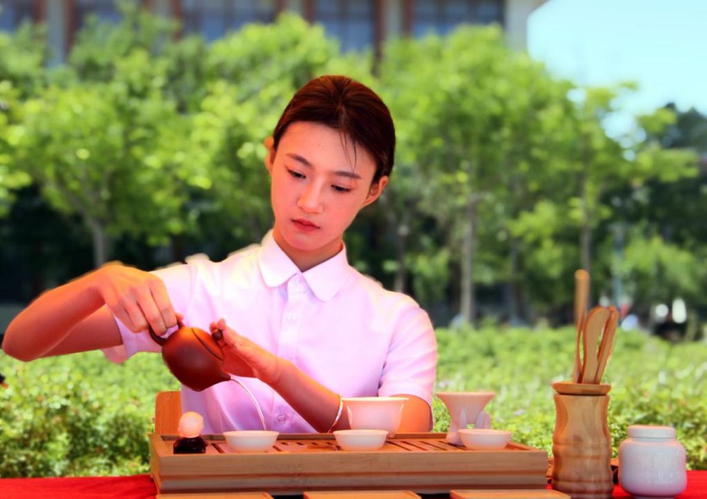 茶艺队的表演同样令人瞩目。队员们身着制服,手持茶具,以优美的茶艺表演向师生们展示了中国传统茶文化的魅力。茶艺队的表演不仅展现了茶艺的精湛技艺,更让师生们感受到了传统文化的深厚底蕴。