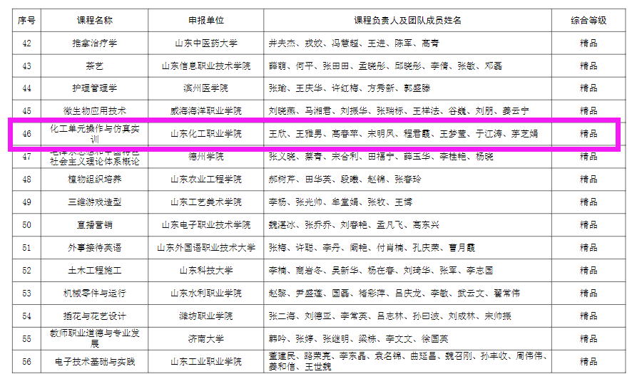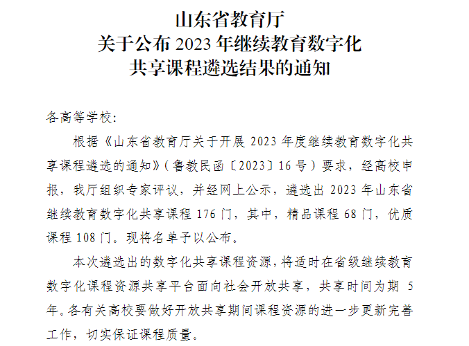 3. 《化工单元操作》课程被认定为2023年山东省继续教育数字化共享课程
