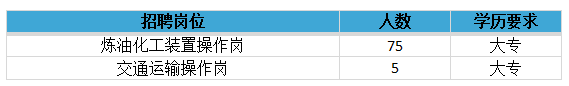 炼油化工装置管理岗、交通运输操作岗,专科(高职)总计招聘80人。