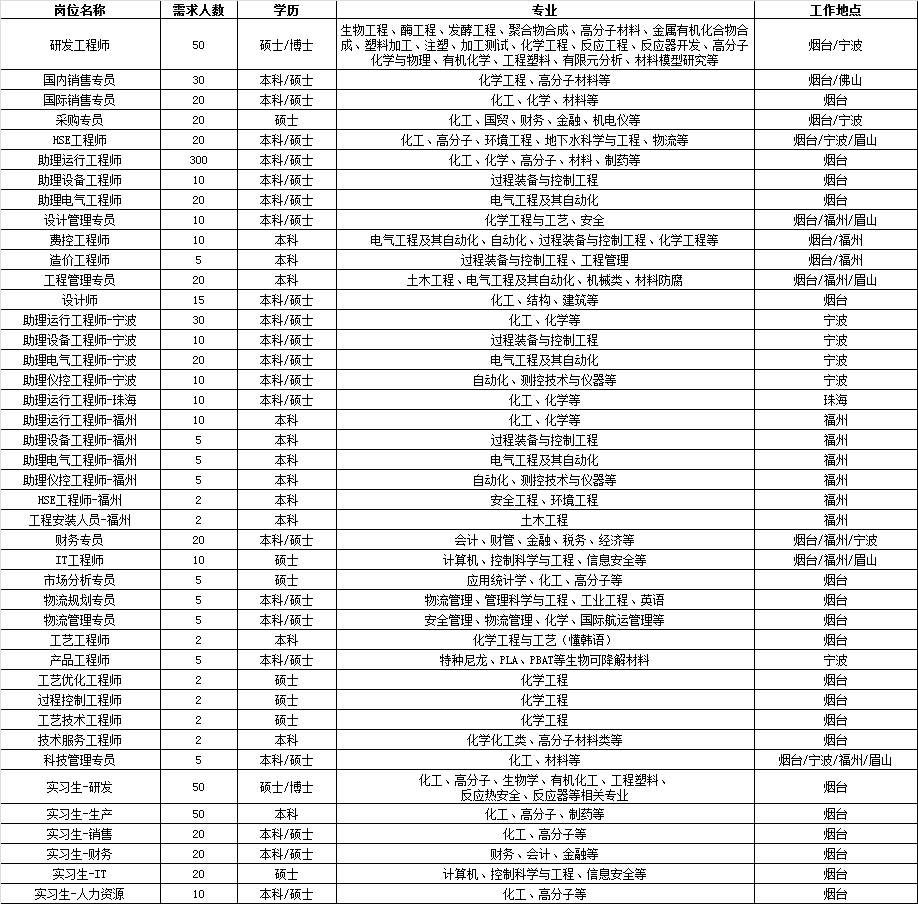 网申网址:http://www.whchem.com/careers/campus-events/recruitment-jobs.html